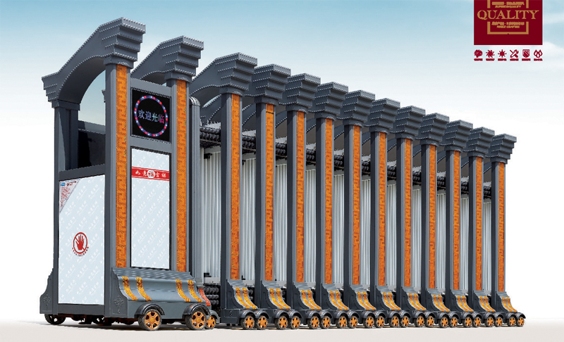 8.抗風結構裝置不但有很強的抗風性能,能確保電動門在強風吹襲下仍能照常運行,其結構能有效減小抗風鉤與導軌的摩擦阻力,提升門體的運行效率。